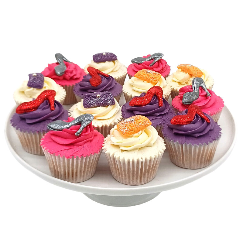 Perfect for your favourite fashionista, these cupcakes are made with delicious vanilla sponge, cream cheese frosting and decorated with handmade sugar handbags and stilettos.