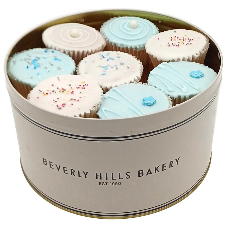 Each tin contains 16 cupcakes, elegantly packaged in our dreamy Fairy Box tied with light blue ribbon. Ideal for new babies, baby showers, new mums, birthday parties or tea parties!