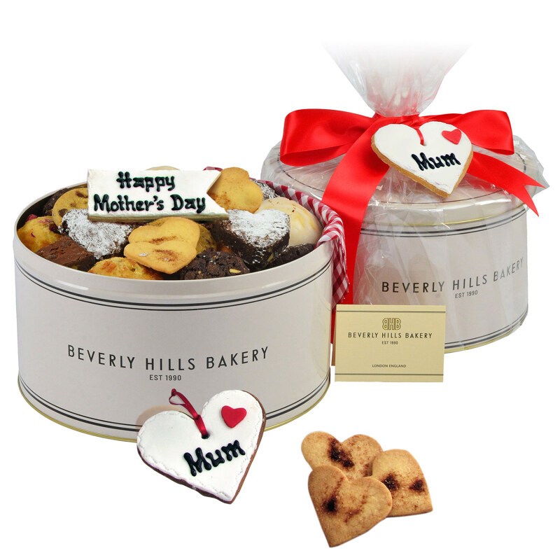 Spoil your precious mother with our red gingham cloth and ribbon gift tin filled with our delicious variety of mini muffins, cookies and brownies plus heart shaped chcolate * walnut brownies and vanilla heart shaped cookies.
